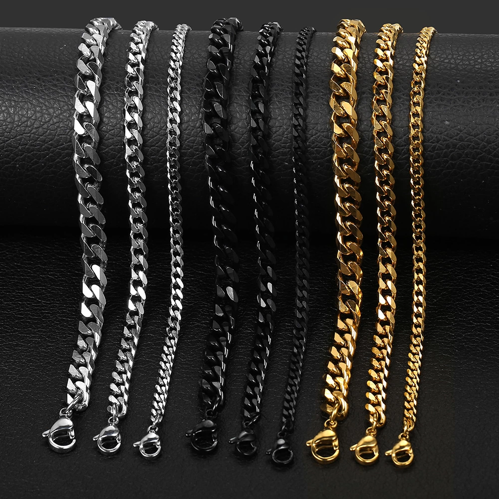 3-11mm Men's Bracelets Stainless Steel Curb Cuban Link Chain Black Gold Color Silver Color Bracelet For Women Jewelry KBM03