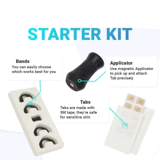 Applying the magnetic strip is quick and easy. For best results, start with a clean nose. Use the magnetic applicator to place a strip on each side of your nose, then secure the band in place.